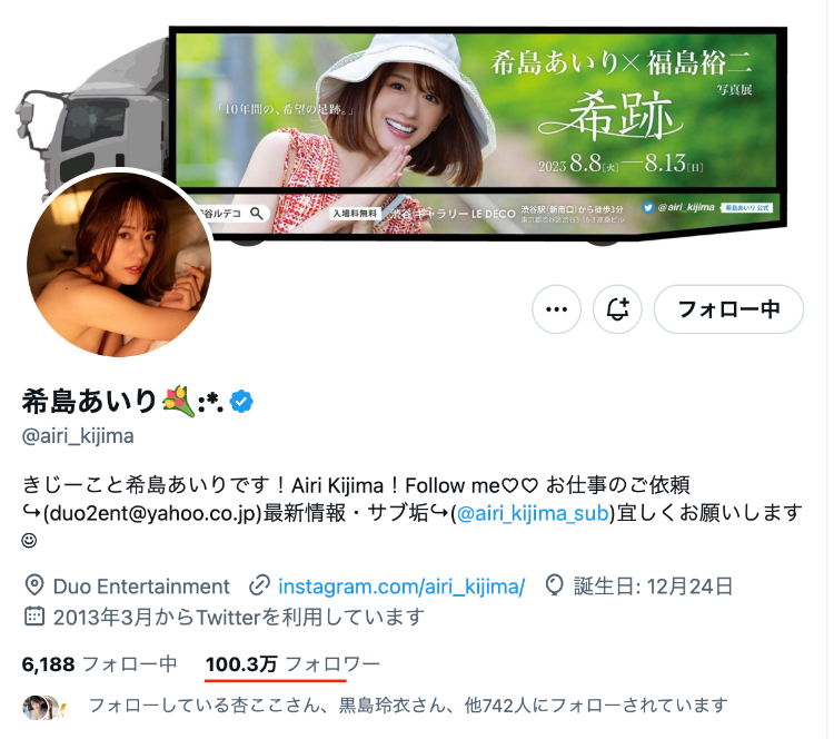 是的,她出道十周年了,然后,她twitter追踪也如其所愿地突破百万追踪了?