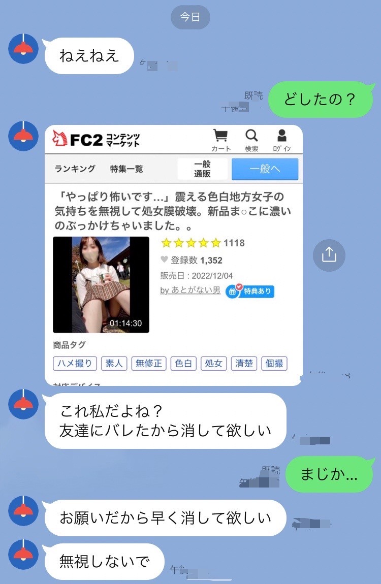 上次那个女孩被发现了。现在收到了女性的删除请求。